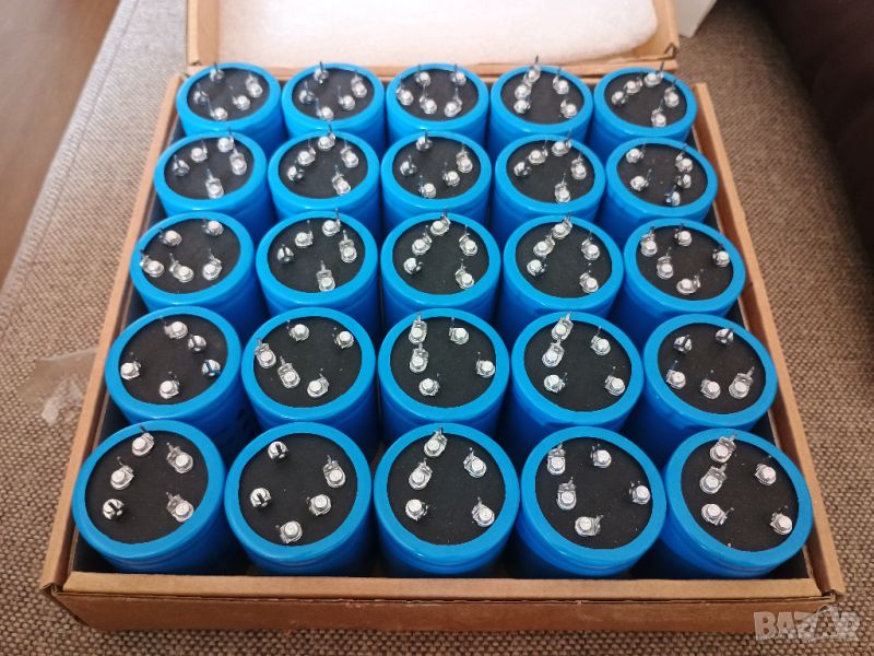 Продавам ги както съм ги купил заради отпаднал проект за Hiraga Class A, в който трябваше да бъдат вложени. Цена на всичките 26 броя 572лева (пада се 22лв за 1 кондензатор, което е на -50% от цената в магазина).