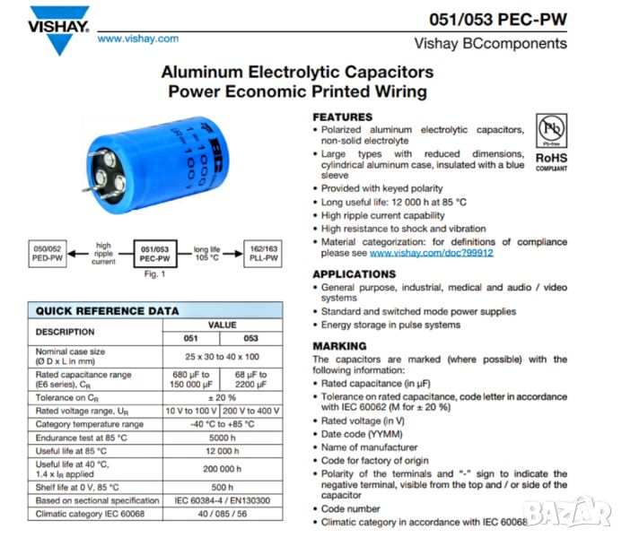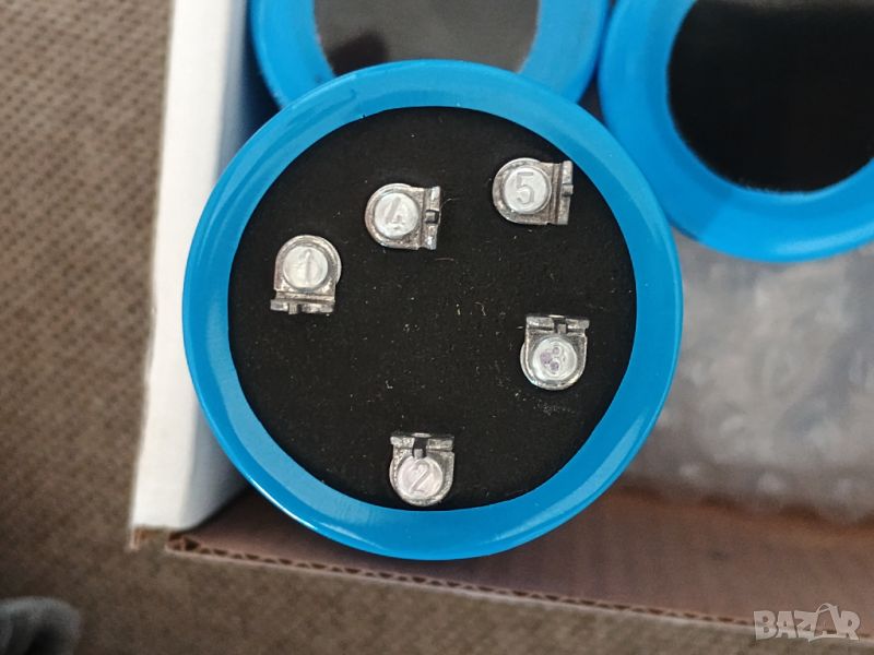 Сложил съм реални снимки да се видят и параметрите. Има означения на самите тях 1крак Positive/ 5крак Ground/ 2,3,4крака N.C. крака 2,3,4 могат да се отрежат при нужда, те са Non Conductive само за укрепване на компонента върху платката (обяснено е на самият кондензатор).