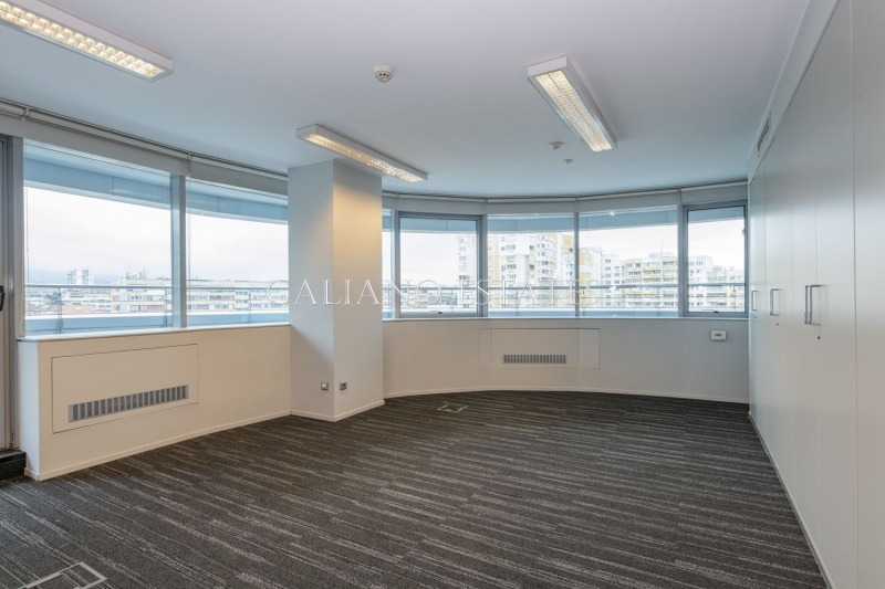 Galiano estates Ви представя светъл и просторен офис в престижна офис сграда на бул. България. Офисът предлага страхотна среда за вашия бизнес, с възможност за използване на отделни работни помещения или отворени пространства. Извън посочената офис площ на разположение на потребителите са просторни тераси, разкриващи невероятни панорамни гледки към Витоша и града. Централно отопление и вентилация. Възможност за наемане на паркоместа на цена 100Е/бр. на месец. Предлагаме и други офиси в същата сграда. Разпределение: 3 кабинета, отворено пространство, заседателна зала, кухня, тоалетни. Оферта 108