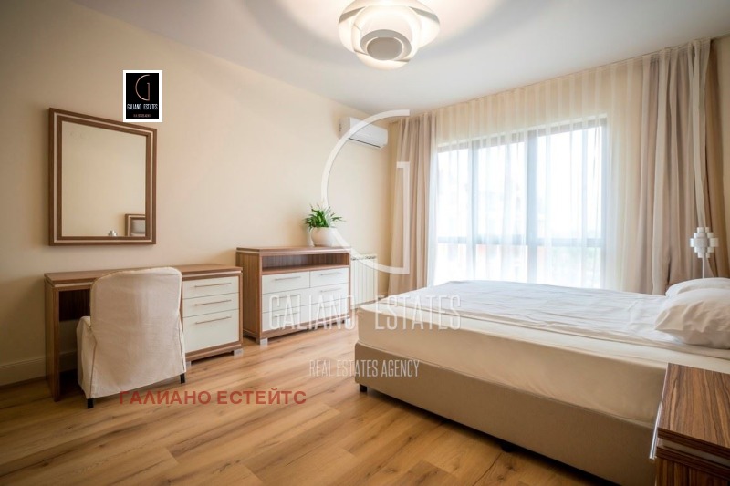 Galiano Estates ви предлага стилен и уютен апартамент в комплекс от затворен тип, разполагащ с множество зелени площи, алеи за разходка, детски площадки, фитнес и Спа център, магазини, охрана и контролиран достъп. Жилището е светло, просторно и напълно обзаведено и оборудвано. Към апартамента има две паркоместа. Разпределение: Всекидневна с трапезария и кухня, три спални, всяка с отделен дрешник и баня, тоалетна за гости и две тераси. Посочената цена е без вкл. ДДС. На територията на комплекса предлагаме и други апартаменти. Оферта 1900