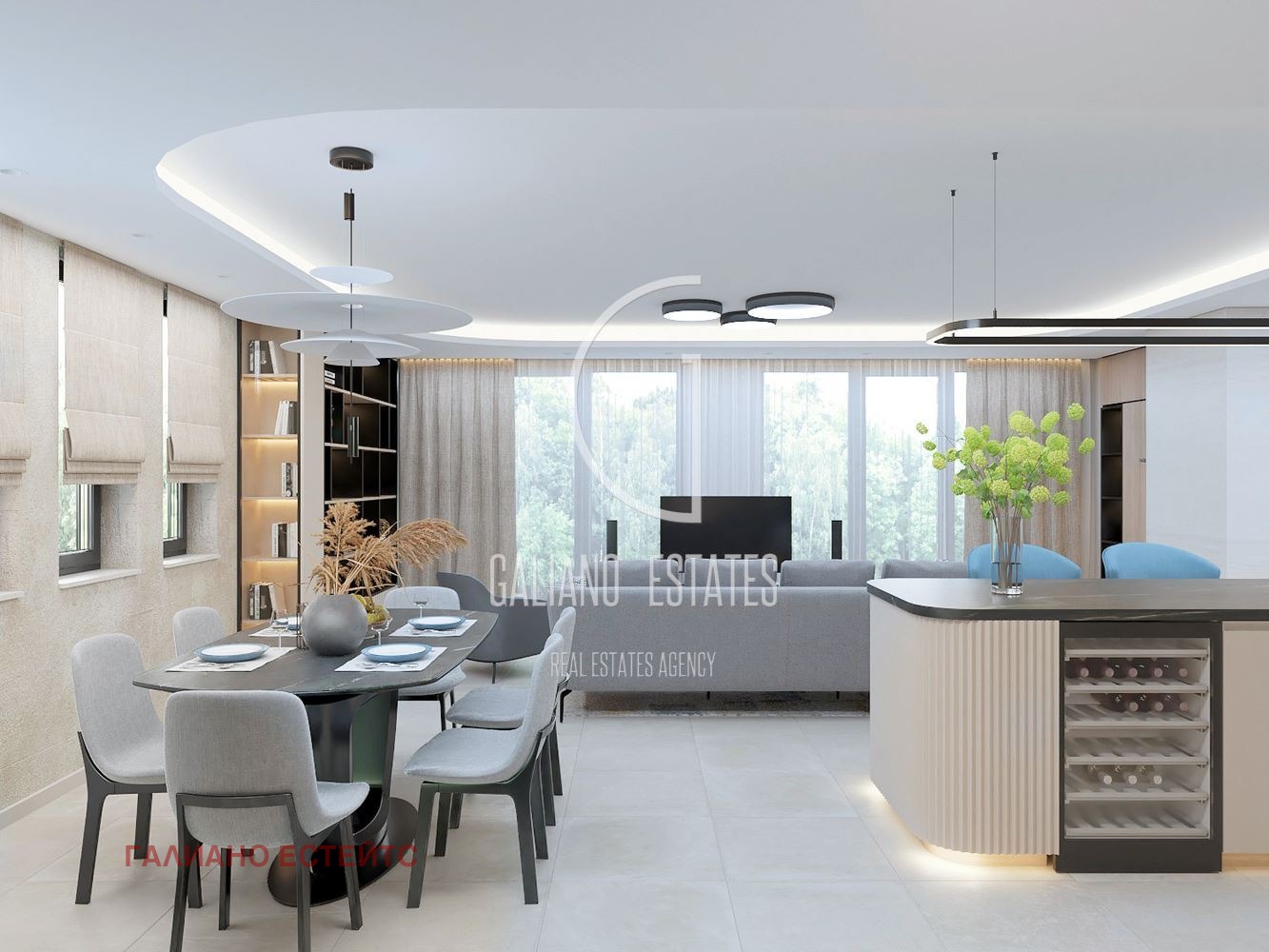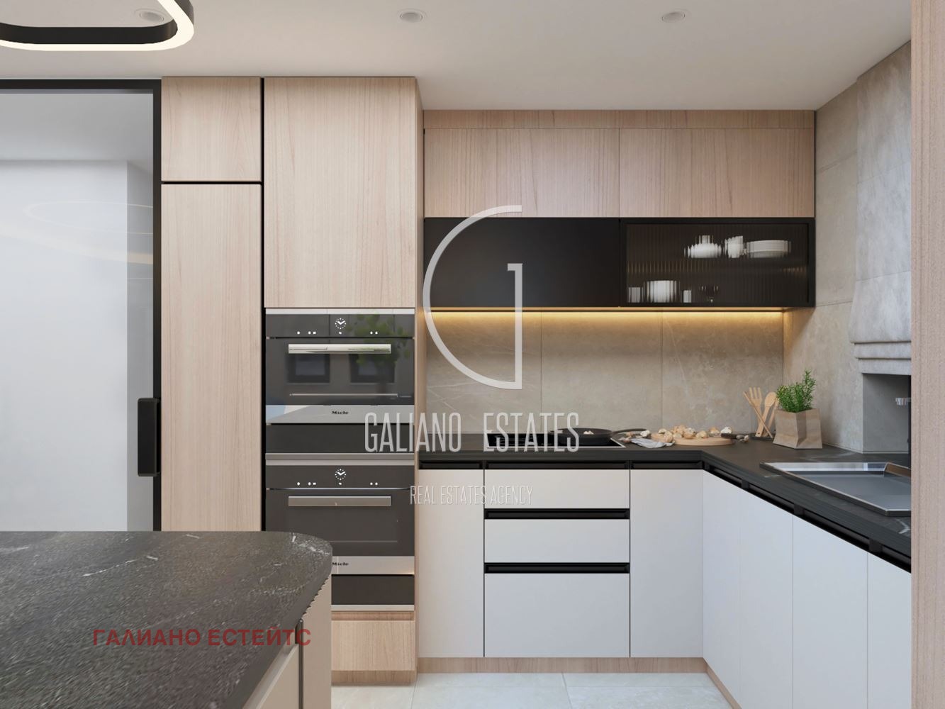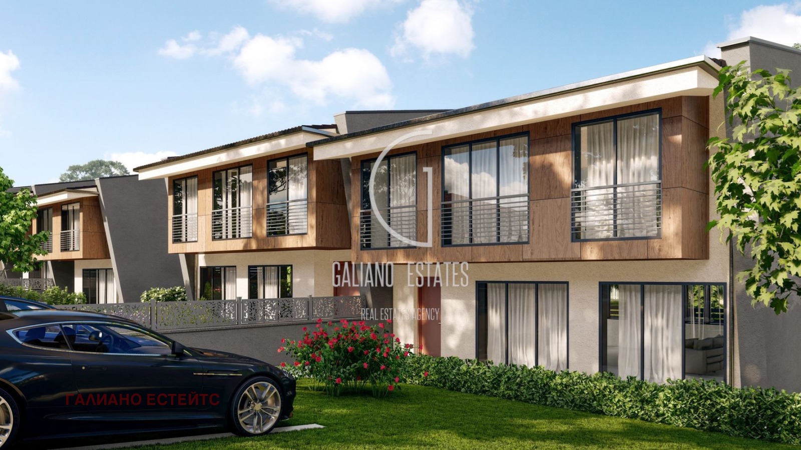 Galiano Estates ви представя нова луксозна редова къща във в.з. Косанин дол, част от комплекс от пет еднофамилни редови къщи. Намира се в близост до Англо-Американското училище, на изключително тихо и спокойно място с лесен и удобен достъп до София. Къщата се състои от три етажа, със следното разпределение: Ниво сутерен: кът за работа, помещение за различни дейности (допълнителна спалня, игрална зала, фитнес, сауна, склад), гардеробна и техническо помещение. Първо ниво: входно антре, слънчева и просторна дневна с кухненска зона и трапезария с излаз към веранда и двор, тоалетна. Второ ниво: три спални, една от които е основна спалня със собствена баня, тоалетна и гардеробна, втора баня с тоалетна. Къщата разполага със самостоятелен добре озеленен двор от 157 кв.м. Всяка къща разполага с по 2 паркоместа. Отопление: монтирано подово отопление с подготовка за монтаж на термопомпа и соларни панели на покрива. Възможност за управление на осветление, отопление и видео наблюдение тип умна УМНА КЪЩА. Степен на завършване: на шпакловка и замазка. Акт 16 е предвиден за 2025г. Посочената цена е с вкл. ДДС. В комплексът има къщи и с по-големи дворове. Оферта 1940.