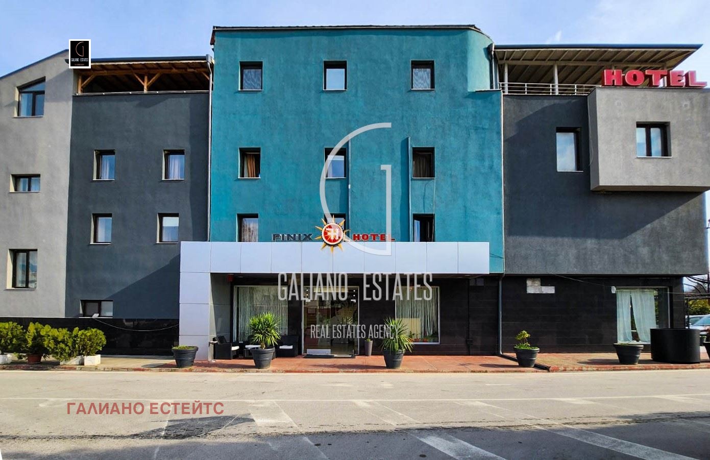 Galiano Estates има удоволствието да ви представи ексклузивно работещ хотел в гр. Сандански - 'Финикс', на 160 км. от столицата на България - гр. София, на 150 км. от гр. Солун - Република Гърция и на 250 км. от гр. Скопие - Република Македония. Имотът е на четири етажа със застроена площ от 378 кв. м. на етаж и обща разгъната площ от 1200 кв. м.