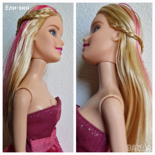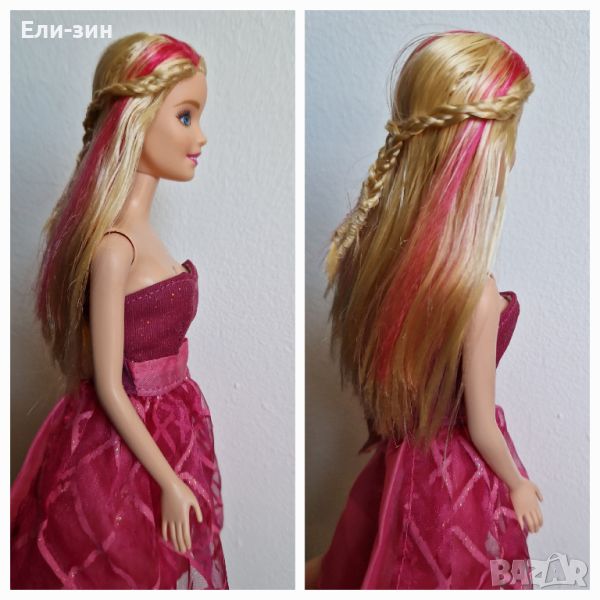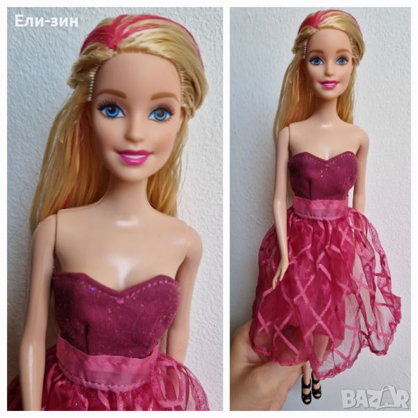 красива оригинална кукла Барби с розови кичури, рокля, обувки и сгъваеми крачета → Обява 46796185