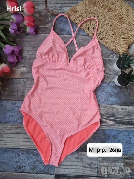 5. Сладурски нов цял бански в приятно розово. М размер. Презрамките на гърба са кръстосани. Цена 13€