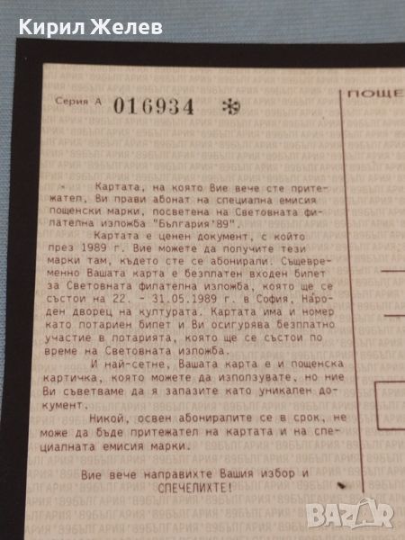 Пощенска карта абонат на специална емисия пощенски марки уникат от соца за КОЛЕКЦИЯ 46474 → Обява 46796978