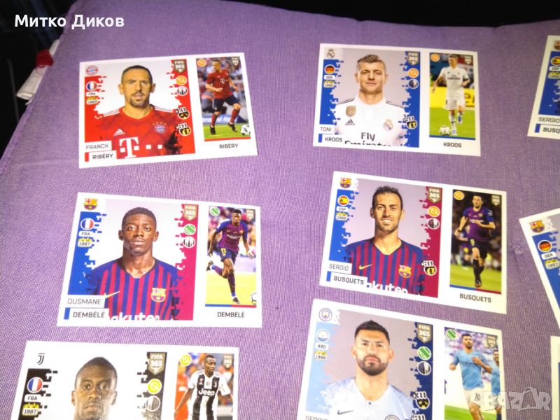FIFA 365 Panini картички нови 2018-2019г 67броя и на Меси и Марадона-цената е за всичките 67 броя -25 лева без Меси и Марадона които са по 5 лева на брой.-всичките 69картички и двете други ще ги намерите копи пейст заглавието в лупата на обявите ми-отделна картичка 1 лев-но минимум 10 да се купят-10 лева
