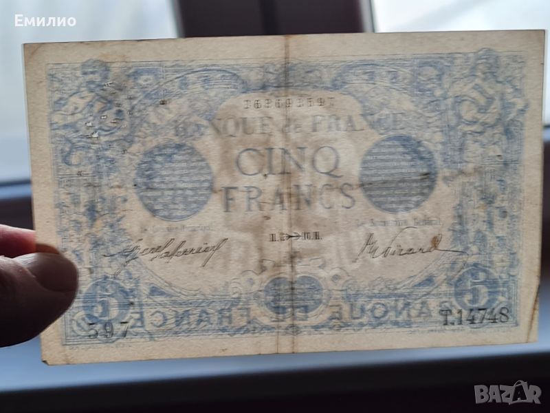 Продавам Рядка Банкнота от Франция. 5 Франка от 1916 год. Добре запазена Банкнота. Виж снимките.