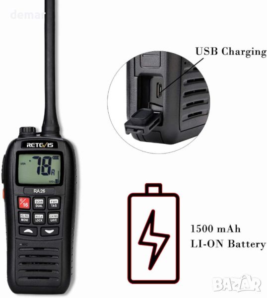 Retevis RA26 Ръчно VHF морско радио, IP67 водоустойчива уоки токи, 88 канала, USB зареждане