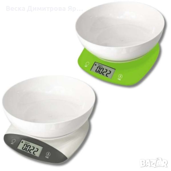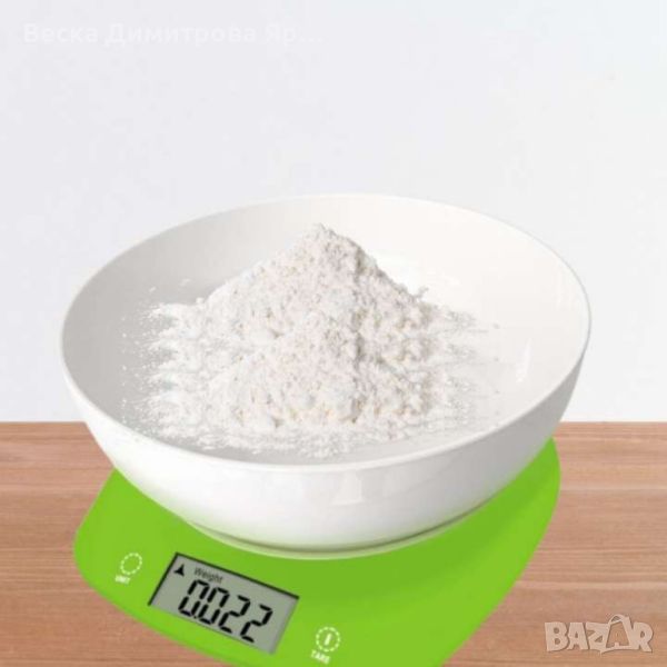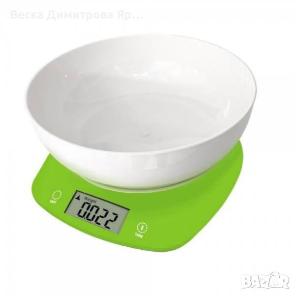 Кухненска везна с купа, 5кг., 2хАААбатерии, LED екран, Зелен, Сив