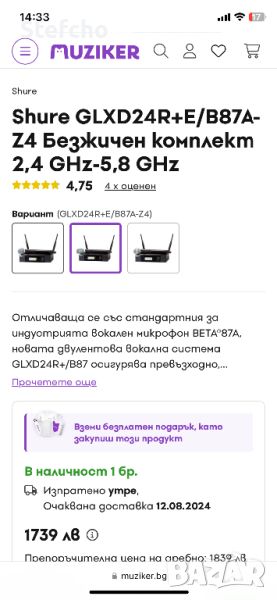 Микрофона го закупих от MUZIKER за 1739 лева + куфарче 100 лева защото този модел се продава без куфарче общо съм дал 1839лева.