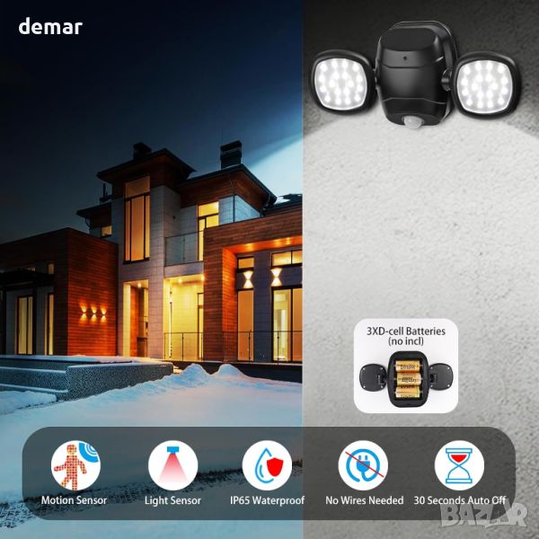 EXTRTASTAR Охранителна лампа Външен сензор за движение, работещ с батерии 6500K, IP65