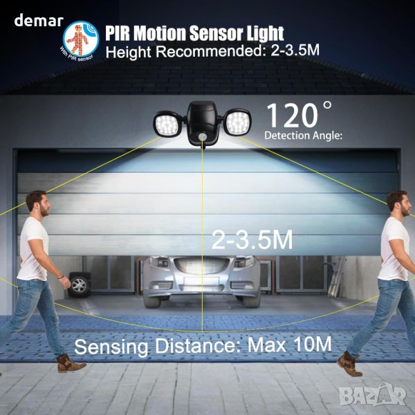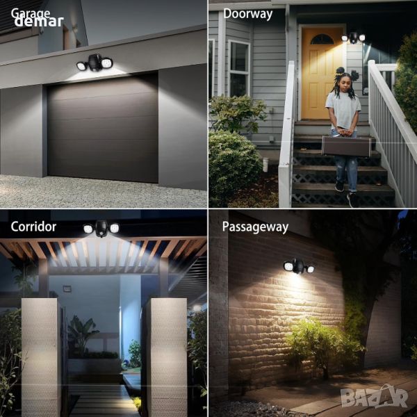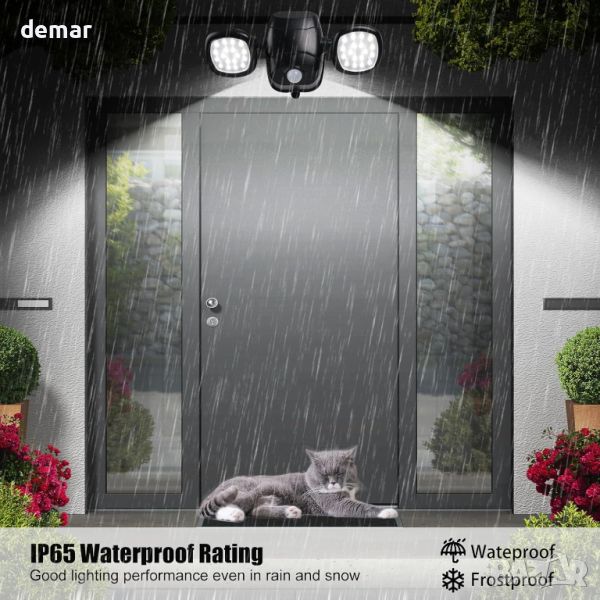 Тази външна сензорна светлина се включва автоматично при условия на слаба осветеност (<30 Lux), когато се открие движение на разстояние до 10 метра и се изключва след 30 секунди бездействие. Той разполага с 180° регулируем ъгъл на осветяване, IP65 водоустойчив и прахоустойчив рейтинг за употреба при всякакви метеорологични условия и се захранва от 3 х D-клетъчни батерии (не са включени). Лесен за инсталиране с безжичен дизайн и включени винтове, той е идеален за осветяване на тъмни зони като коридори, гаражи, веранди, градини и др.