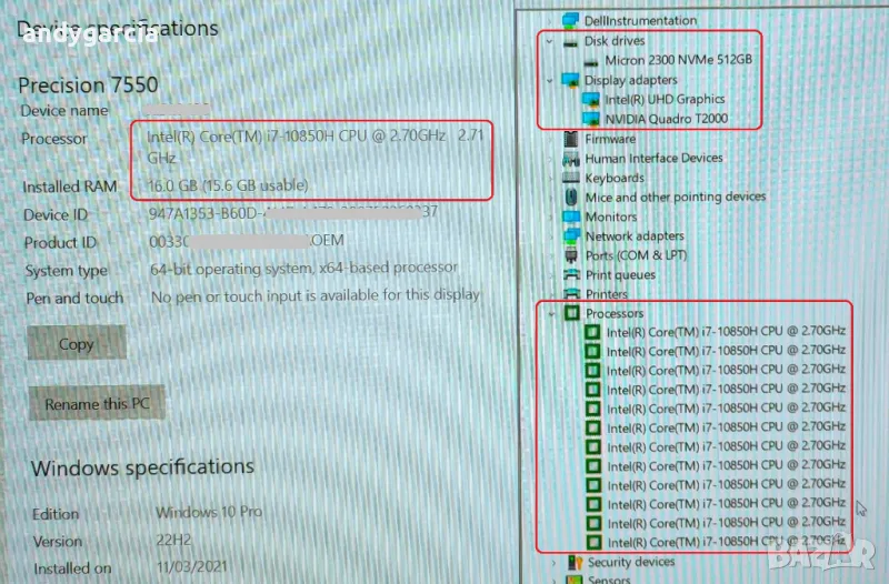 Мощен процесор за Intel Core i7-10850H с 8 ядра и 16 нишки с буст до 5.10Ghz.