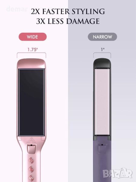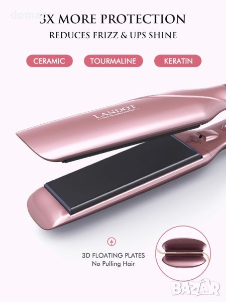 Постигнете до 50% по-блестяща коса с керамичната преса за коса LANDOT, предназначена да подобри здравето и блясъка на косата ви. С антистатични, керамични, турмалиново йонни и гладко плъзгащи се покрития, тази преса осигурява 4 пъти повече защита, допълнителен блясък и по-малко статично електричество. 1,75-инча широки, 110 мм по-дълги плаващи плочи позволяват по-бързо оформяне на по-дълги секции, което го прави идеален за дълги, гъсти и къдрави типове коса. Плоската ютия се предлага с цифров дисплей и регулируеми настройки на топлината от 250°F-450°F, подходящи за всички типове коса. Допълнителните функции включват 25-секундно време за загряване, автоматично безопасно изключване след 60 минути, световно двойно напрежение (110v-220v), въртящ се на 360 градуса кабел, топлоустойчива торбичка и заключване на плоча за лесно съхранение.