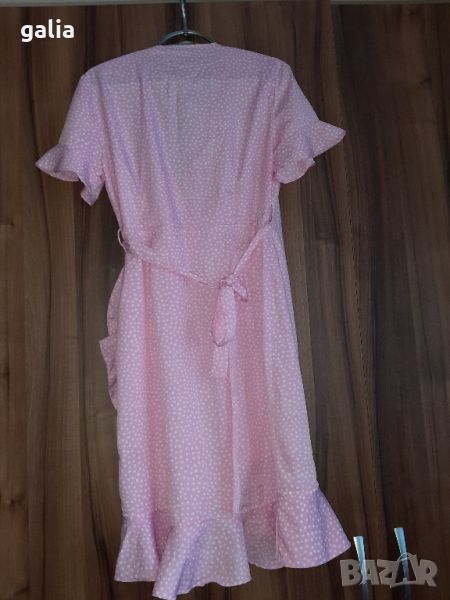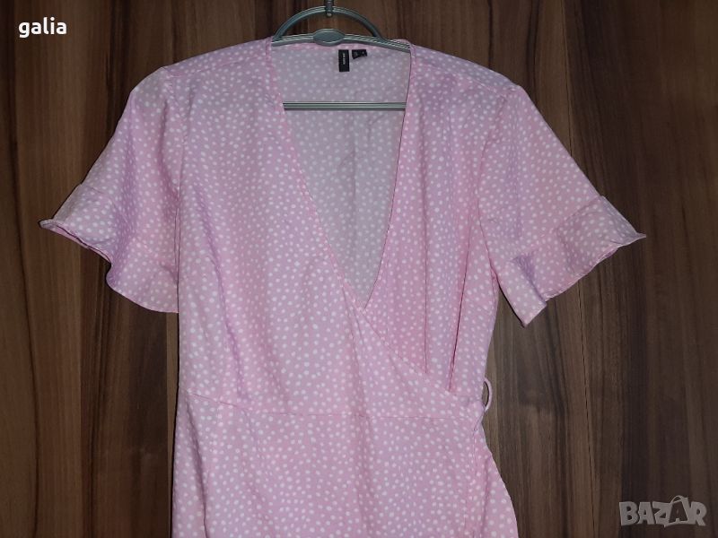 Сладурска розова рокля на точки тип " прегърни ме", изработена в Индия за Vero moda от 100% полиестер. М размер. Подмишници - 48 см. Талия - 39 см. Ханш - 49см. Дължина - 92 см. В перфектно състояние. Никога не е носена, само е изпрана.