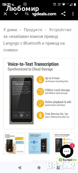 Устройство за незабавен езиков превод Langogo с Bluetooth и превод на снимки