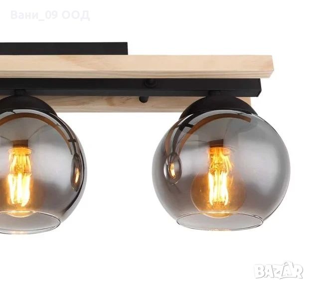 Плафониера в черно и дървесно с абажури от опушено стъкло - 3х25W, E27, 15/60/20.5 см