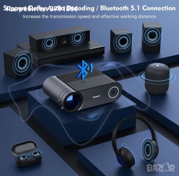 проектор, HD Dolby WiFi Bluetooth проектор, 8000 лумена, собствен 1080P, домашен, Toperson, преносимо домашно кино за iOS/Android/TV Stick/PC/PS4/PS5