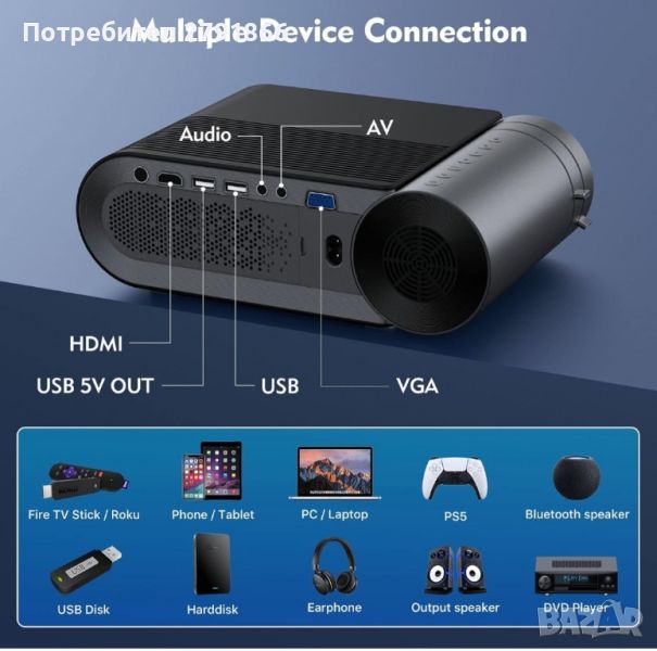 【Собствена 1080p и 8000лумена】При домашна употреба естествената 1080p разделителна способност и 8000 лумена luminne осигуряват отлично изживяване при гледане плюс видео поддръжка. Подходящ е за споделяне на филми, игри, спортни игри и др. Със семейството и приятелите, което го прави идеален избор за вашето домашно кино.