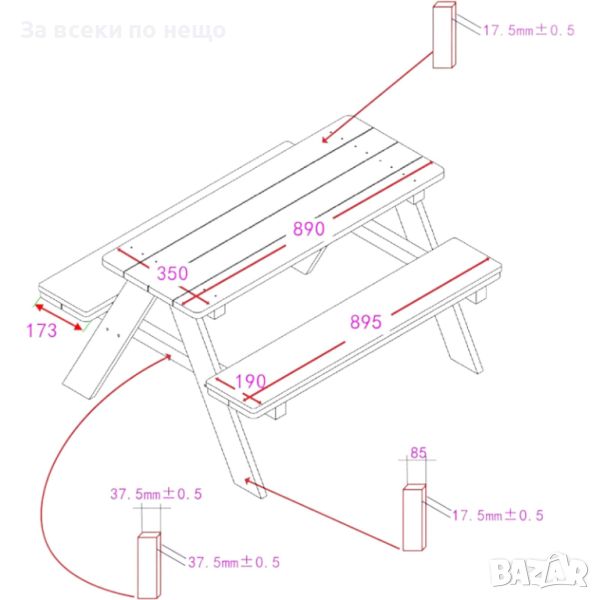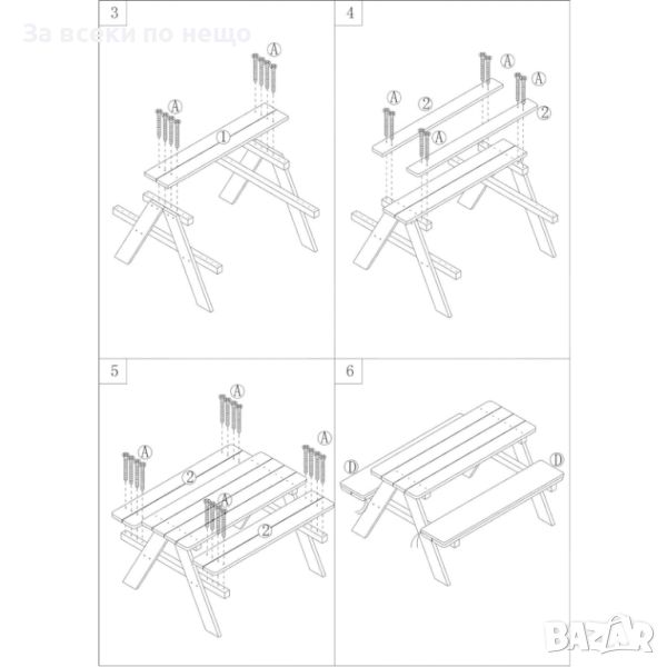 Масата за пикник може да се използва както в градината, двора, балкона, така и вътре в детската стая.