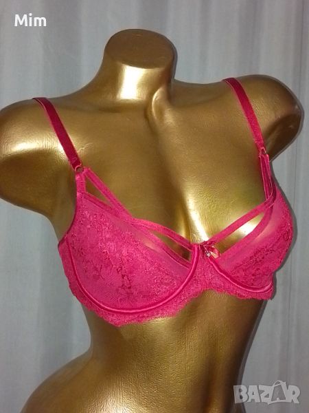 Чашката е твърде с банели и чокър , регулируеми презрамки,двуредно закопчаване. Няма следи от употреба.