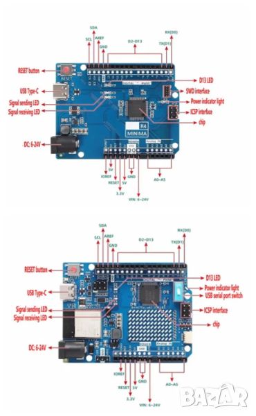 Той включва DAC за аудио проекти, RTC за точно проследяване на времето и HID за емулиране на клавиатура/мишка. Щепселът за жак (VIN) поддържа напрежение до 24 V, което го прави съвместим с обичайните адаптери за по-високо напрежение.