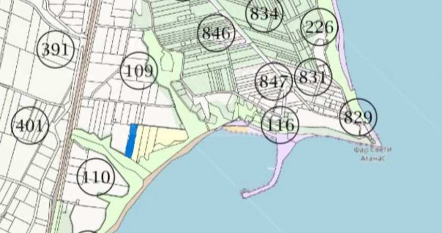 Имотът с площ от 5000 кв.м е равен и разположен до регулация, непосредствено над пристанището и има невероятна гледка към Обзорския залив.