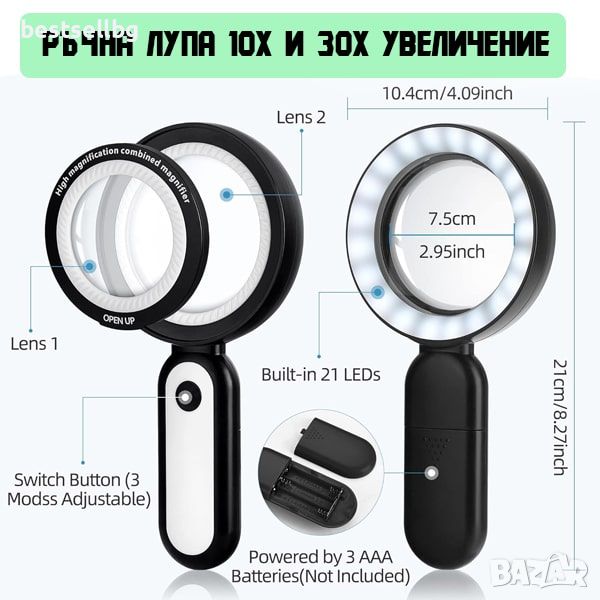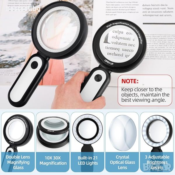 - Двойна мощност на увеличение: С лекота превключвайте между 10x и 30x увеличение, за да разгледате всеки обект отблизо. Идеална както за ежедневни задачи, така и за професионална употреба.