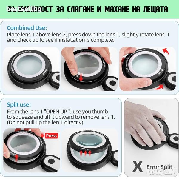 - Широка гама от приложения: Подходяща за четене, хобита, ремонт на електроника, проверка на бижута, монети и много други.