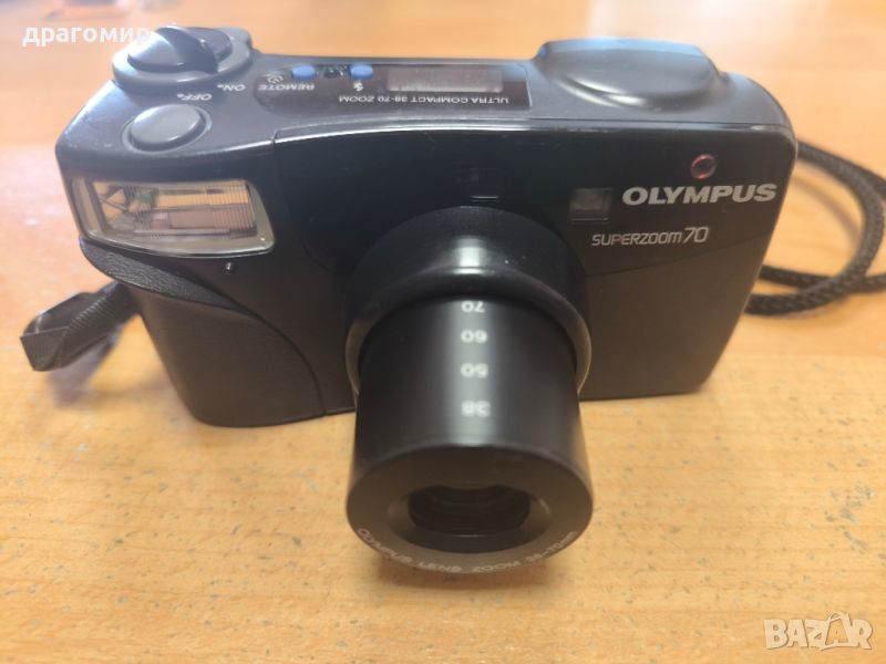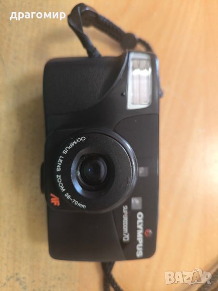 продавам лентов фотоапарат, Olympus super zoom 70,с кожен калъф, работи,може с два вида бактерии,една CR123 или две батерии АА по 1, 5 v LR6, имам още много други фотоапарати, камери, обективи, чанти, светкавици, батерии, бинокли, скенери, зарядни устройства, касети, филтри, ремъци, ленти при закупуване на повече неща отстъпка