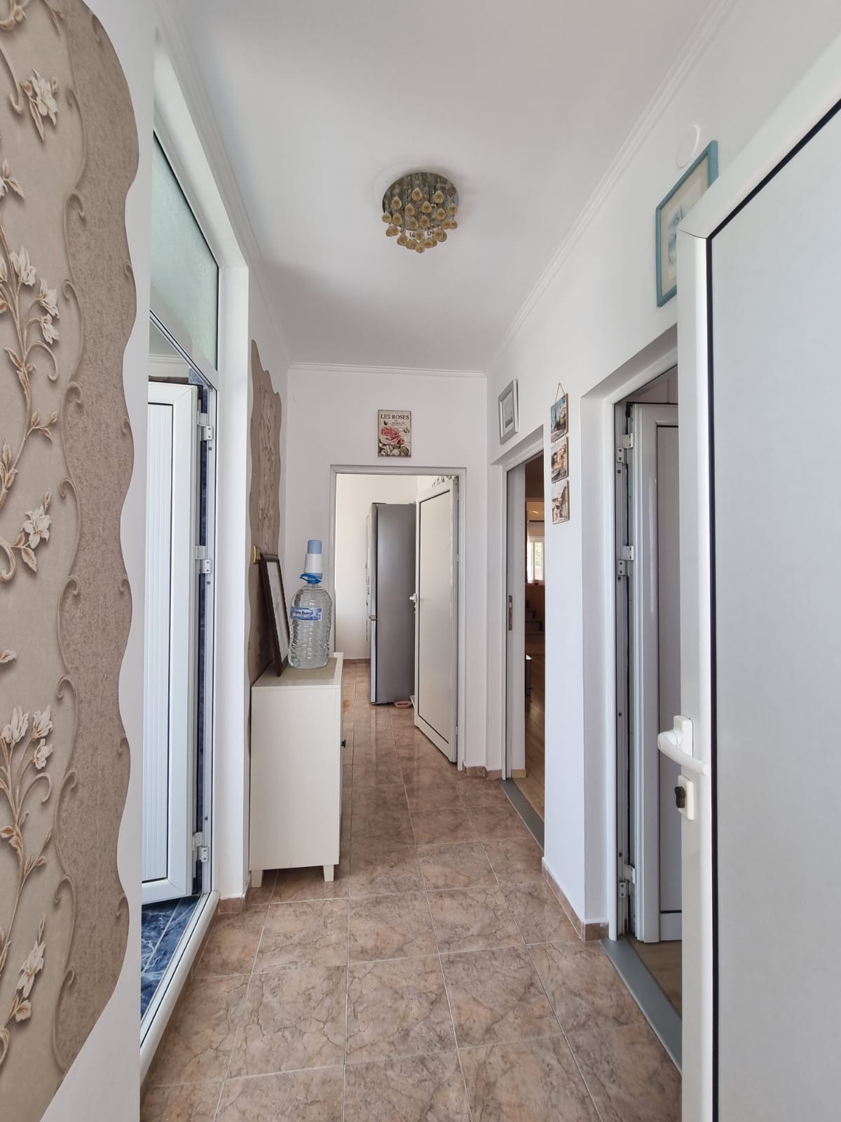 Втори етаж: входно антре, просторен светъл хол с трапезария, отделна кухня, две спални, баня с душ кабина и две тераси с изглед към двора. Къщата е обзаведена, оборудвана с електроуреди и готова за нанасяне.