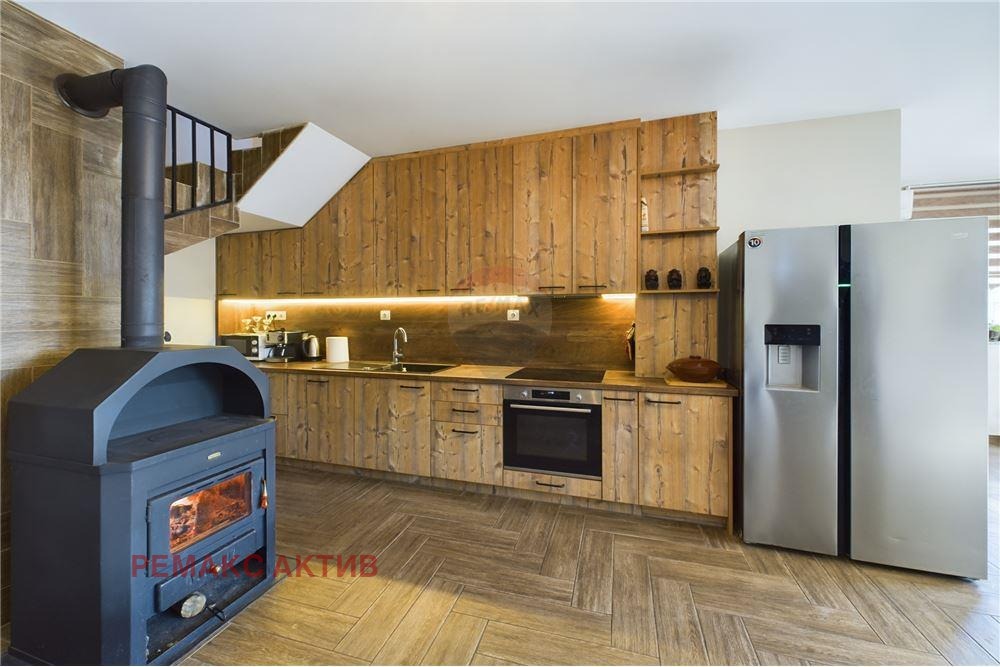 - голяма и слънчева дневна с трапезария и кухня, 40 кв.м. напълно обзаведена с нови уреди, климатик и камина;