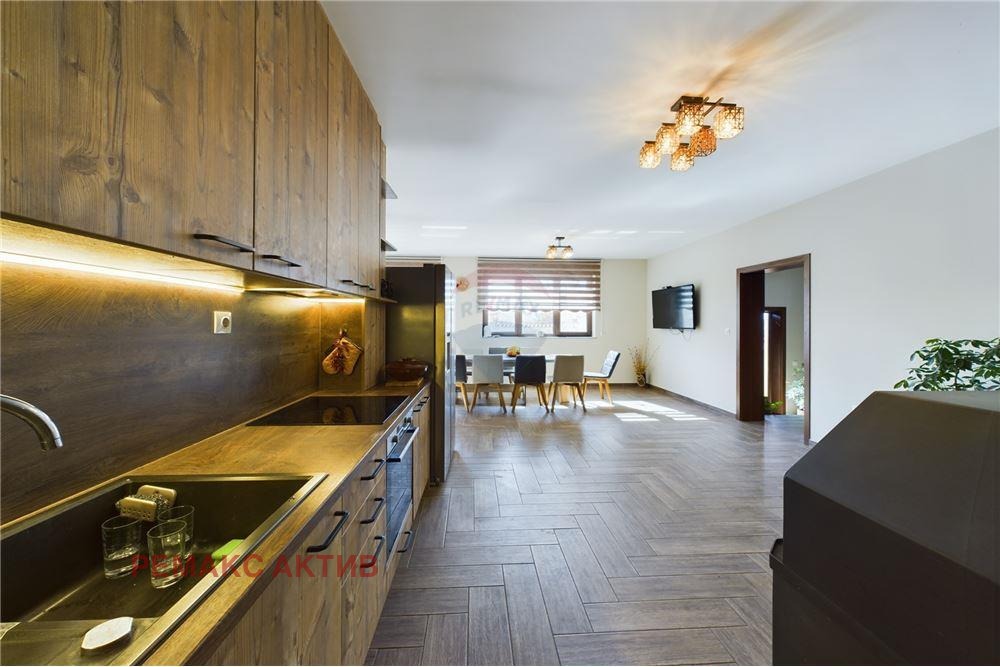 - голяма и слънчева дневна с трапезария и кухня, 40 кв.м. напълно обзаведена с нови уреди, климатик и камина;