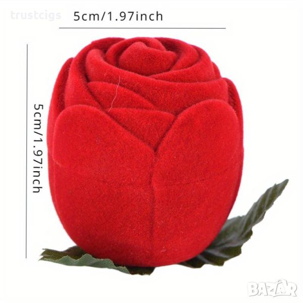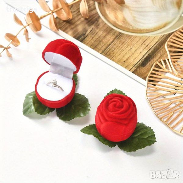Търсите перфектния начин да направите предложение за брак или да изразите любовта си? Нашата ръчно изработена кутия за пръстен с форма на роза е точно това, което ви трябва! Изработена от висококачествено кадифе в класически червен цвят, тази кутия ще запази най-ценното ви бижу в безопасност и ще създаде незабравимо преживяване. Вътрешната кадифена подплата предпазва пръстена от повреди, а реалистичният дизайн на розата добавя романтичен щрих. Можете да персонализирате кутията с гравирано послание, за да я направите още по-специална.