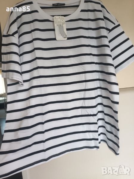 4ХЛ Бяла тениска на черни черти → Обява 46809799