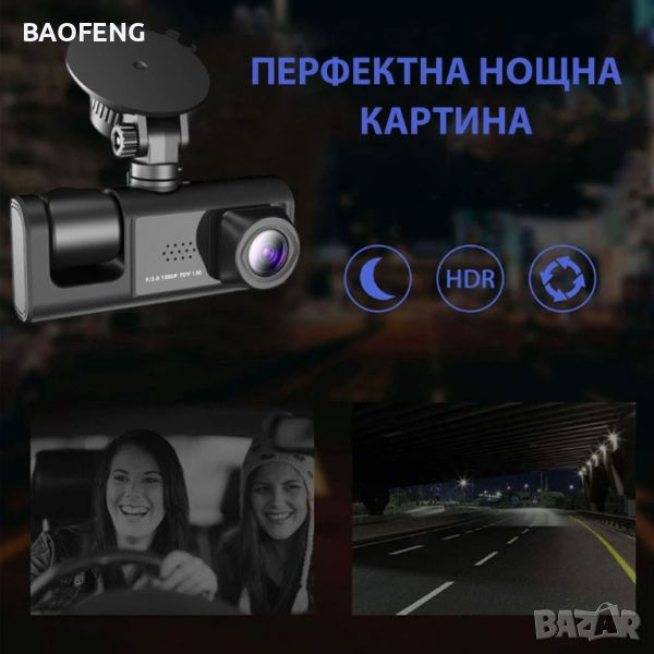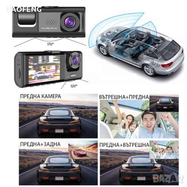 Този трикамерен видеорегистратор не просто записвате това, което се случва на пътя, вие получавате пълна картина на околната среда, на вътрешността на автомобила и на това което се случва отзад. Всеки детайл е важен и с този видеорегистратор вие няма да изпуснете нищо.