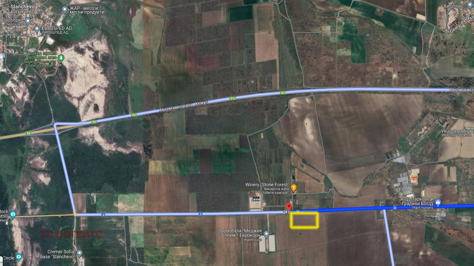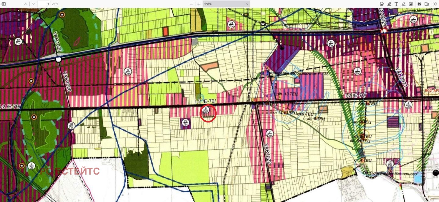 Одобрени ПУП-ове за изграждане на промишлена и логистична база със складова, офисна и търговска площ. Възможност за водоснабдяване и ел.захранване. С проект за пътна връзка.