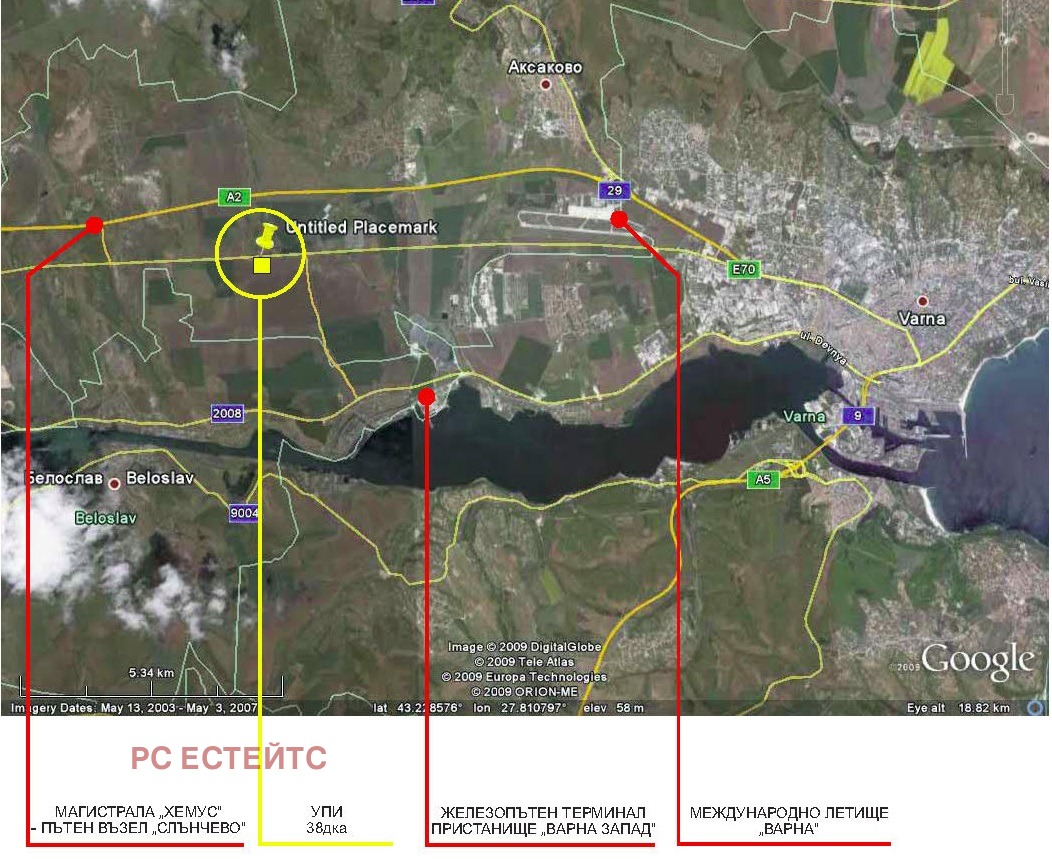 Пет съседни незастроени парцела /УПИ/ в землището на Игнатиево. гр.Аксаково, област Варна, с обща площ от 38 дка и 190м лице на Републикански път ГП 4.