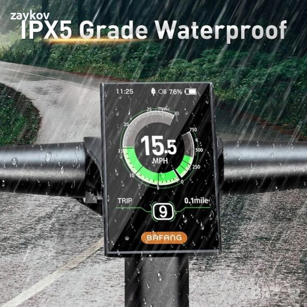 Този дисплей Bafang C18 работи добре в среда с пръски до умерен дъжд, наслаждавайте се на каране при всяко време. Моля, уверете се, че USB капакът е закрепен във влажна среда.
