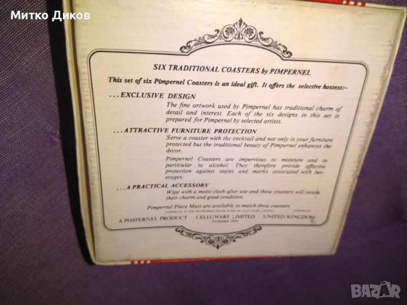 Pimperel coasters 105х105мм винтидж 4 броя в кутия нови подложки маркови → Обява 46811096
