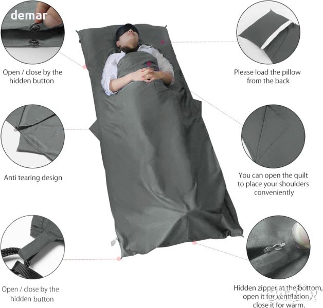 Подплатата на спалния чувал за пътуване MYCARBON е универсален и основен спътник за пътници и къмпингуващи. Изработен от 100% памук, той предлага мек, дишащ комфорт и може да се използва самостоятелно в горещ климат. С размери 220 x 90 см със странични отвори за лесен достъп, той е достатъчно просторен за високи хора и се затваря с бутон. Преносим и лек с 545 g, той се опакова в компактна чанта за съхранение (23 x 19 x 3 cm) и може да се пере в пералня до 30°C за лесна поддръжка. Идеална за защита срещу дървеници, прахови акари и алергени, тази подплата е перфектна за всяко пътуване или домашна употреба.
