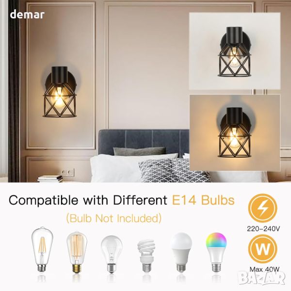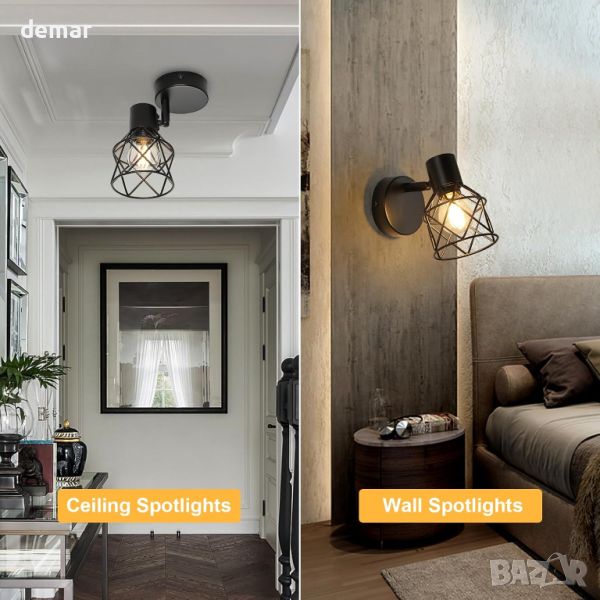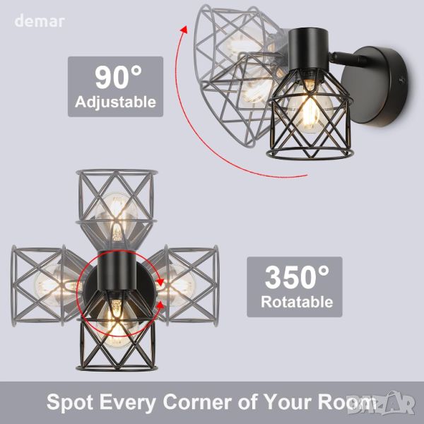 Винтидж черният прожектор за стена разполага с въртене на 350° и наклон на 90° за разнообразно осветление във всяка стая, подходящ за монтаж на таван или стена. Изработен от удебелено желязо с покритие против ръжда, той се отличава със здрав дизайн и 360° излъчване на светлина. Съвместим с E14 крушки до 40 W, поддържа различни типове и се димира със съвместим превключвател (не е включен). Лесен за инсталиране с включен хардуер, приспособлението е идеално за различни настройки от всекидневни до кафенета. Забележка: Крушката не е включена.