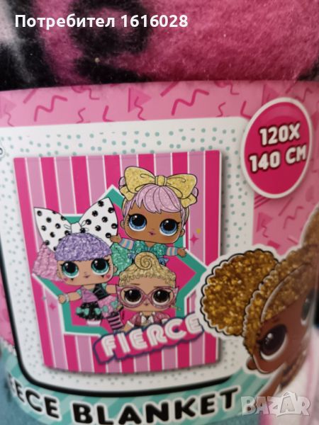 Полареното одеяло с трите куклички на LOL е с размери 120 см./ 140 см.- ПРОДАДЕНО.