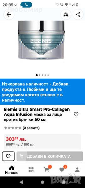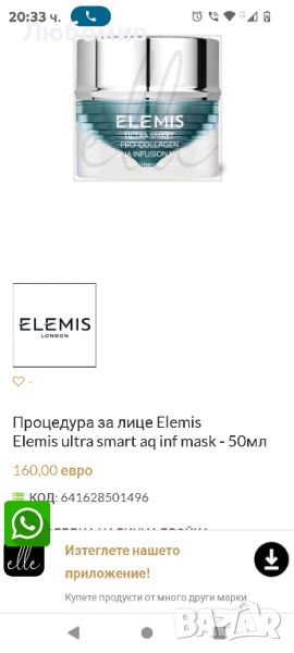 Elemis Ultra Smart Pro-Collagen Aqua Infusion маска за лице против бръчки 50 мл.Elemis Ultra Smart Pro-Collagen Aqua Infusion маска за лице против бръчки 50 ml
