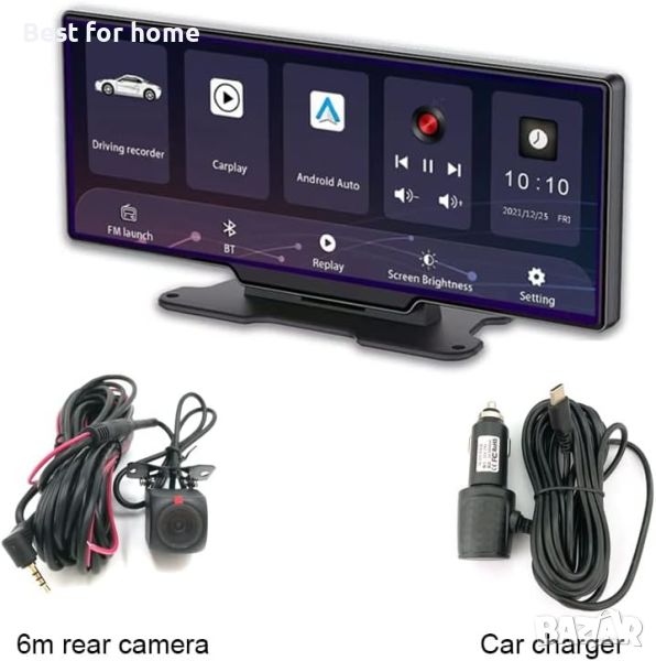 Преносима безжична Carplay 9.3" мултимедия за кола Westods с 2.5K Dash Cam - 9.3" HD IPS екран, Android Auto, 1080p резервна камера, цикличен запис, Bluetooth, GPS навигационно главно устройство, радиоприемник за кола