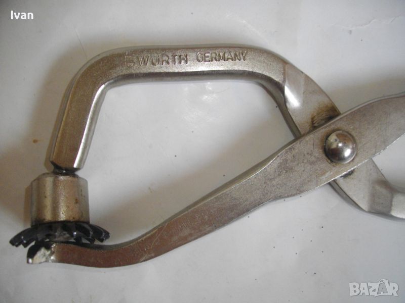 ОПИСАНИЕ на клещи за пружини на барабанни спирачки. Цена 129 лв Марка WURTH. Производство - оригиналното немско - Made in GERMANY. Инструмента е почти нов, трудно различим от нов. В ОТЛИЧНО техническо/работно състоняие. Цялостна дължина 345 мм. Инструментът е тип пружинни клещи с подвижен нокът, заключени във всяка желана позиция. Чрез тях се премахват и подменят пружините на барабанни спирачки на автомобили. Предназначение