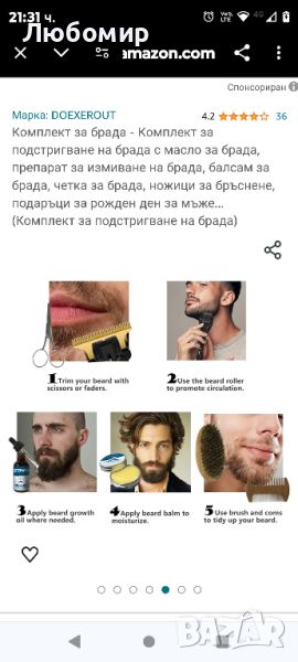 Комплект за брада - Комплект за подстригване на брада с масло за брада, препарат за измиване на брада, балсам за брада, четка за брада, ножици за бръснене, подаръци за рожден ден за мъже... (Комплект за подстригване на брада).Този комплект за растеж на брада ще направи вашата брада да расте по-бързо и ще изглежда по-пълна, по-здрава, по-силна и по-блестяща. Предлага се опакован в кутия, която включва ролка за брада, масло за растеж на брада, балсам за брада, гребен за брада, ножица за брада, самобръсначка за брада, чанта за съхранение при пътуване. Този луксозен комплект за растеж на брада