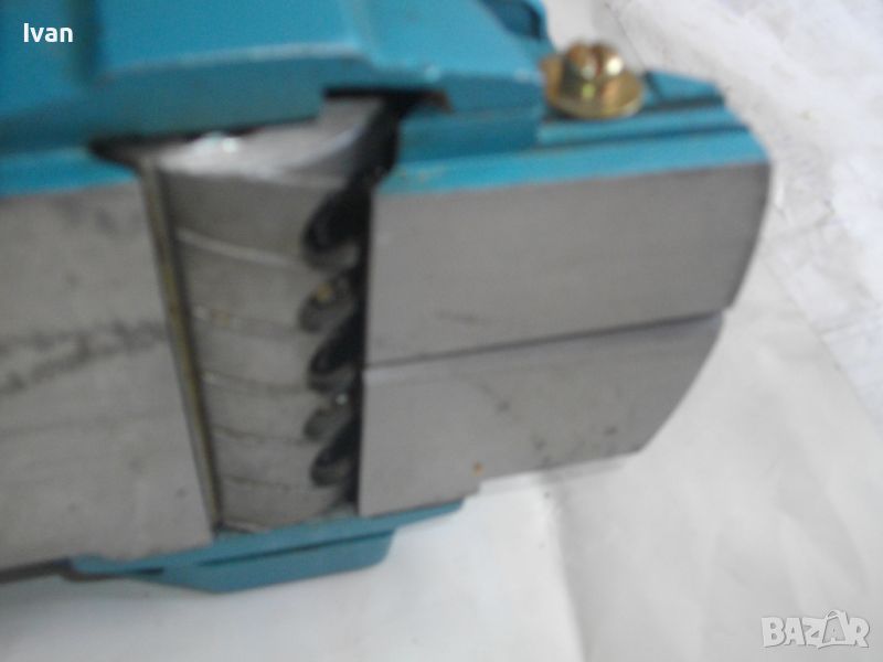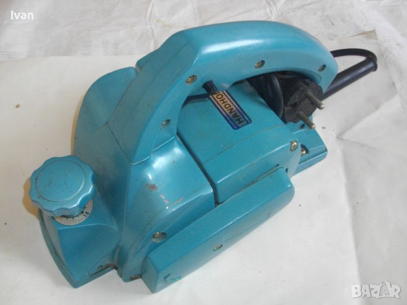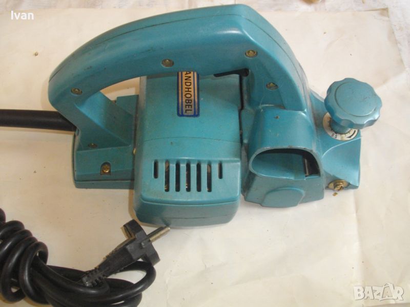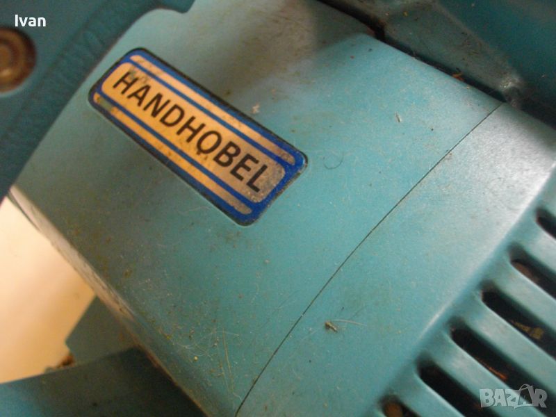 ренде немско старо качество професионално с ножове 90 мм ширина IBW 6903 HEH 500 - КАТО НОВО - 229 ЛВ. Марка и модел/маркировки - HANDHOBEL HEH 500 IBW 6903. ПРОФЕСИОНАЛНА МАШИНА, СТАРО КАЧЕСТВО ВИСОК КЛАС. Почти нова, с много запазен външне вид и ОТЛИЧНО техническо/работно състояние. Работи много добре, силно, мощно, бързо и ефективно при стружуване. Без забележки. Мощност на мотора - 500 вата ,скорост - 15000 об/мин. Ножове - 2 броя, отлични, почти нови, без забележки, без наранявания - размер ширина 90 мм. Алуминиев долен плот, еднокомпонентно излят заедно с корпуса. Корпус - алуминий. Цялото ренде е алуминиево, само дръжката, капака на мотора и врътката за стружуване са твърда пластмаса. Четки външни. Регулация стружуване прецизна от 0,1 до 1,0 мм. Автостоп на спусъка. Тегло на машината - 3,0 кг.