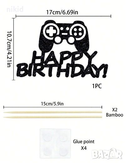 Джойстик контролер конзола Happy Birthday черен картонен топер украса декор за торта → Обява 46813842