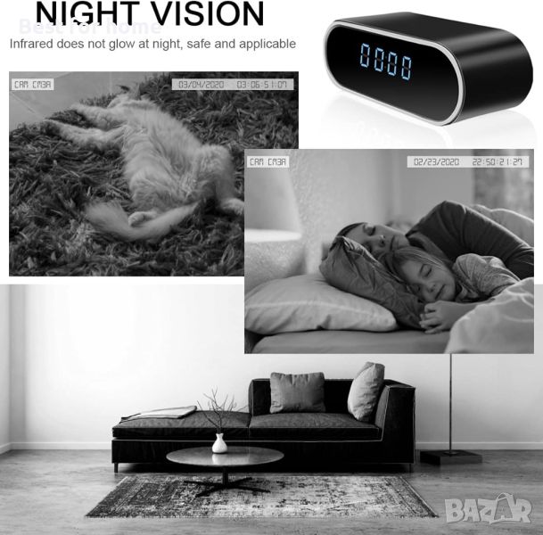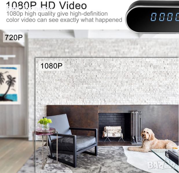Часовник с камера, HD 1080P WiFi камера с будилник с нощно виждане